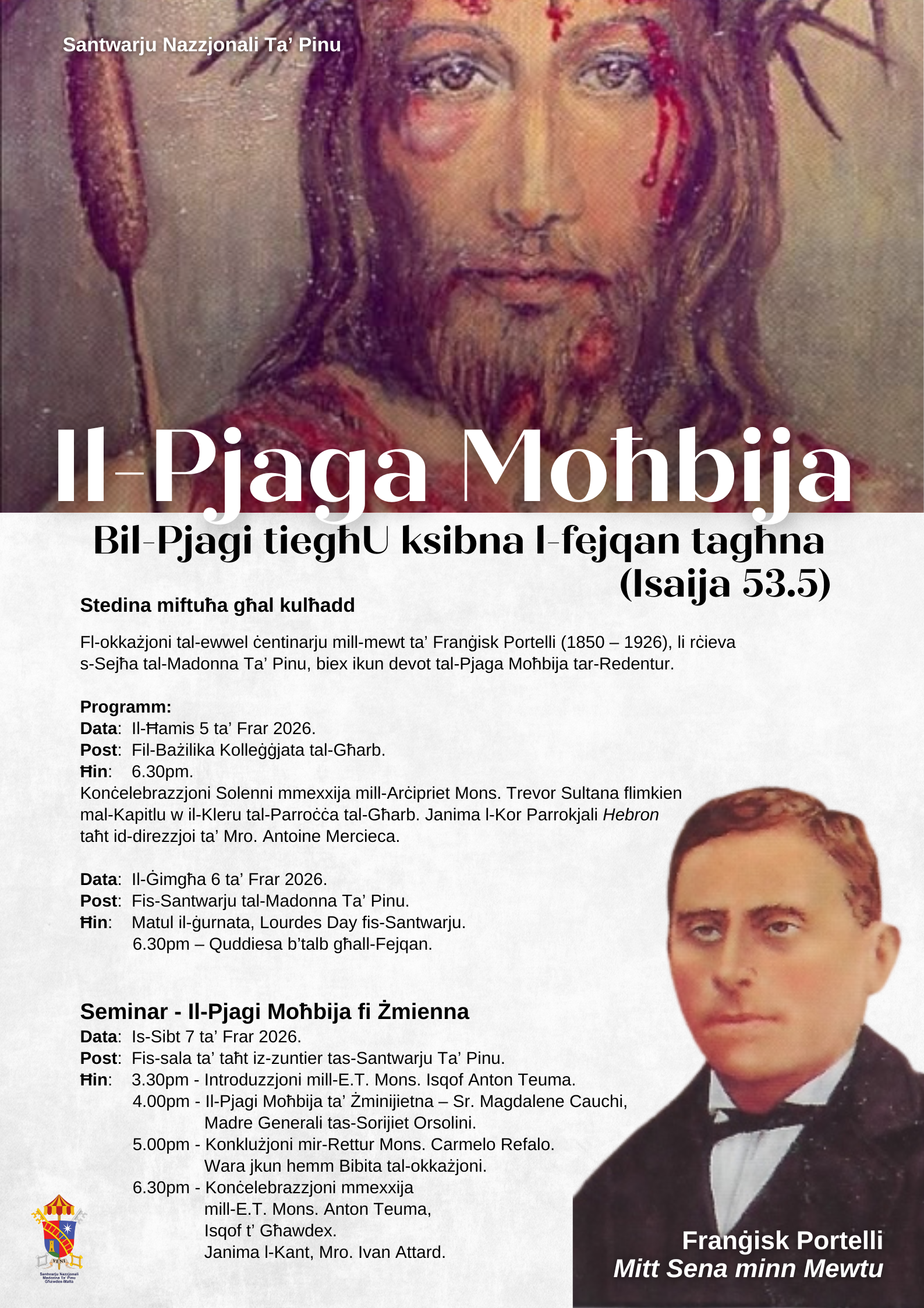On the occasion of the first centenary of the death of Franġisk Portelli (1850–1926), who received the call of Our Lady of Ta’ Pinu to foster devotion to the Hidden Wound of the Redeemer.